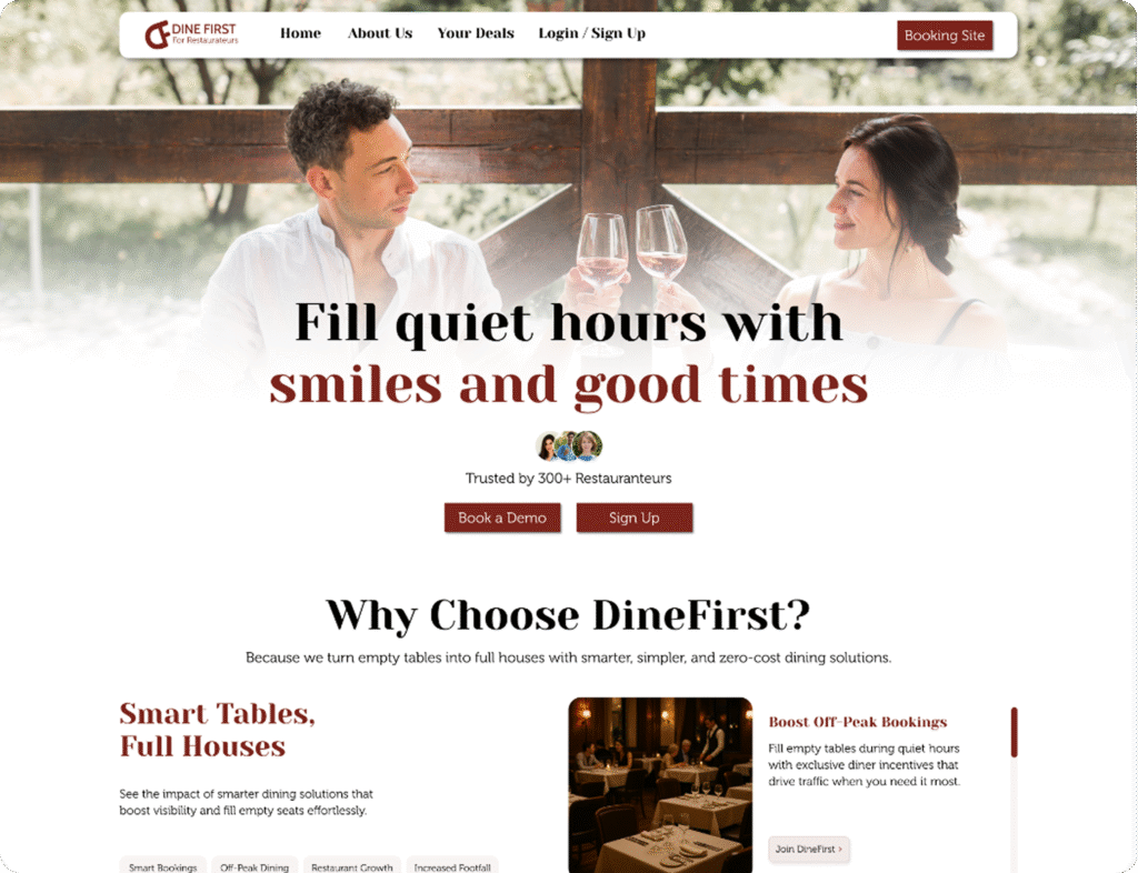 DineFirst bridges the gap between diners and restaurants through technology that feels effortless. Whether you’re a hungry diner, a newly launched café, or a well-known bistro, DineFirst helps you succeed—turning quiet hours into full houses with smiles and good times.